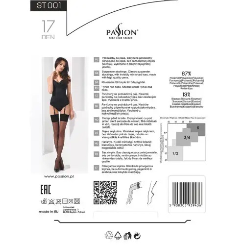 Ищете пару классических чулок, в которых вы будете чувствовать себя сексуально и уверенно? Подберите классические чулки под пояс с широкой резинкой ST001 3/4 bianco от Passion. Эти чулки предназначены для ношения с поясом с подвязками и имеют широкую ленту сверху, чтобы надежно удерживать их на месте.