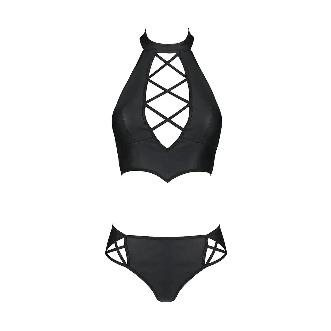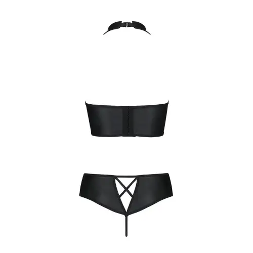 Комплект из эко-кожи Nancy Bikini black L/XL - Passion, бра и трусики с имитацией шнуровки