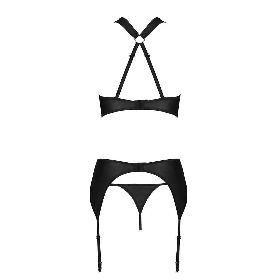Сетчатый набор: бюстгальтер с халтером, трусики и пояс для чулок Amanda Set black L/XL - Passion