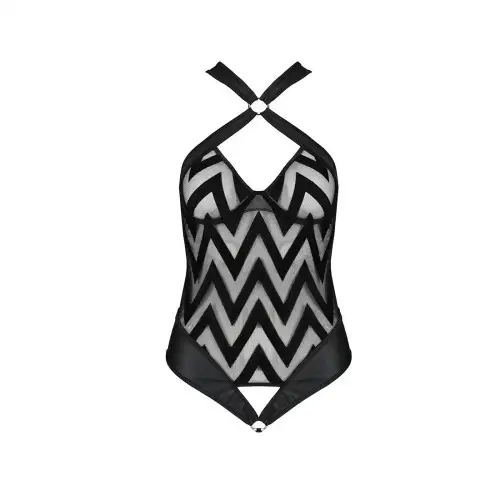 Hima Body black XXL/XXXL - Passion, потрясающее сетчатое боди с бретелькой на шее и ритмичным рисунком, в котором вы будете чувствовать себя сексуально и уверенно. Эта вещь идеально подходит для тех, кто хочет добавить изюминку в свою коллекцию нижнего белья, или для тех, кто ищет что-то особенное для романтической ночи.