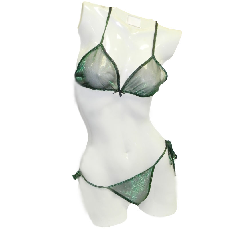 Эротичный комплект из полностью прозрачной ткани. Состоит из лифа и трусиков-стрингов. Ткань комплекта блестит и переливается. Доступные цвета: зеленый, фиолетовый, голубой. Размер: S\M, M\L . Размер и цвет уточняйте у менеджера при заказе.