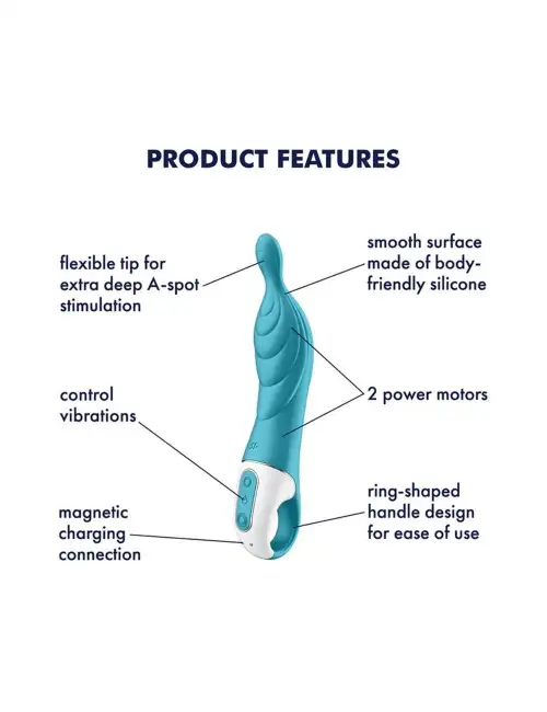 Satisfyer A-Mazing 2 Turquoise Vibrator, роскошная и мощная секс-игрушка, которая поднимет ваше удовольствие на новый уровень. Этот вибратор оснащен двумя двигателями с синхронизированным управлением, 12 режимами вибрации и общей длиной 22 см. Вставляемая длина составляет 15 см с дополнительным стержнем 3,5 см для дополнительной стимуляции. Максимальный диаметр 4,3 см, а диаметр стержня 1,7 см для удобного введения и использования. Кроме того, он водонепроницаем по стандарту IPX7, поэтому вы можете наслаждаться им в любых условиях!