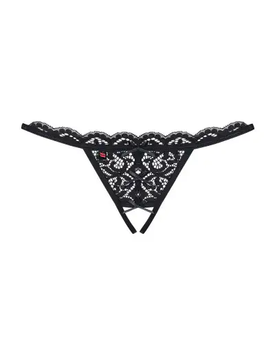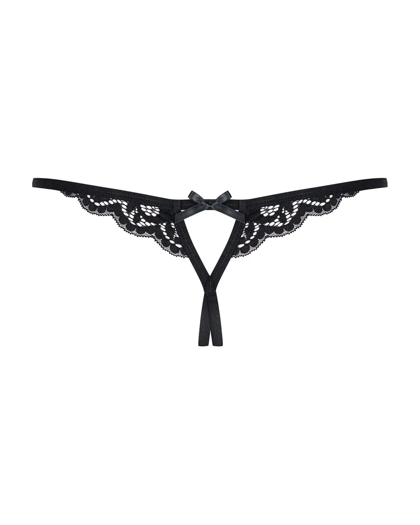 Кружевные танга с двумя отверстиями Obsessive 831-THC-1 crotchless thong L/XL, черные, бантики