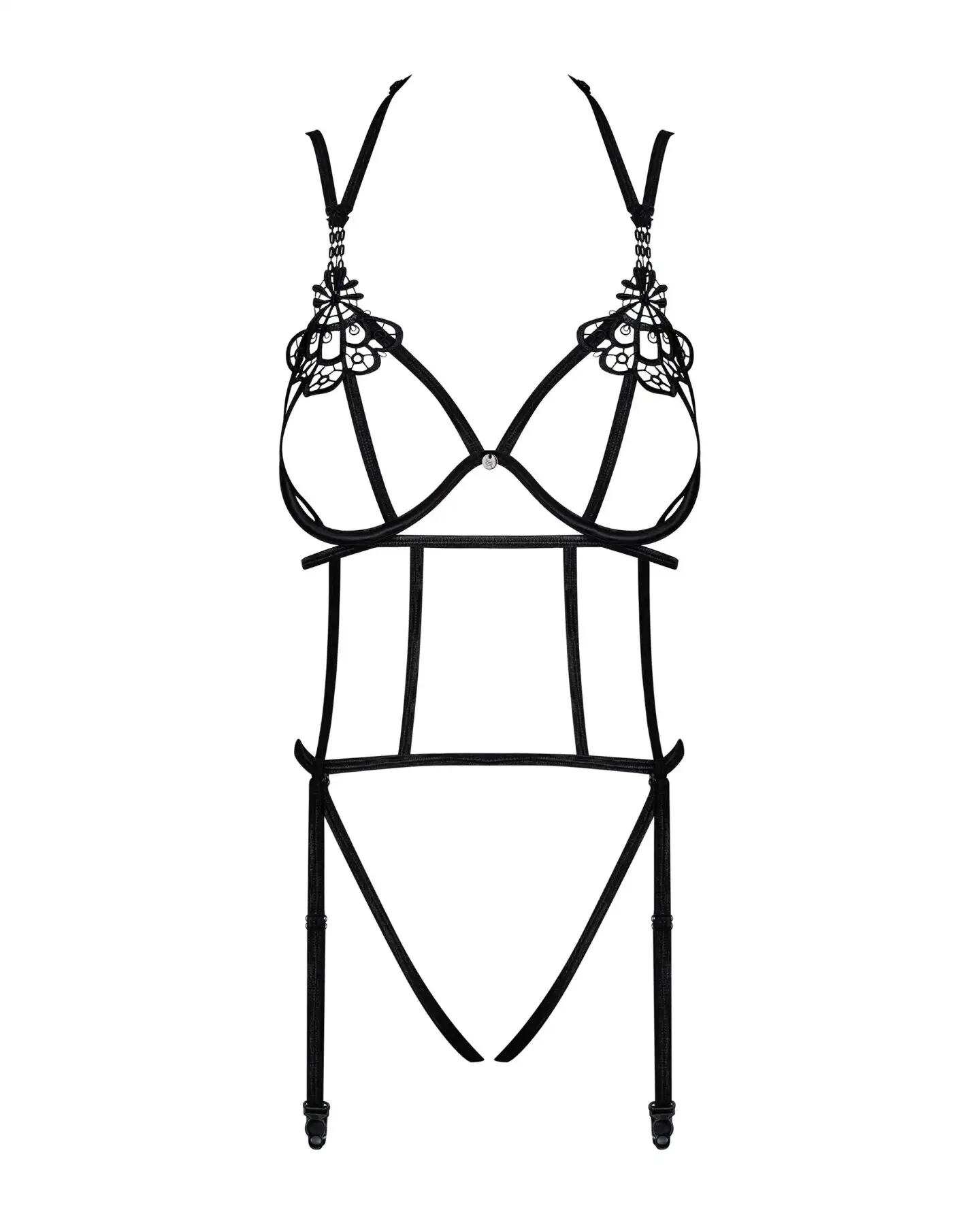 Боди из стреп с доступом Obsessive Badossa crotchless teddy S/M, черный