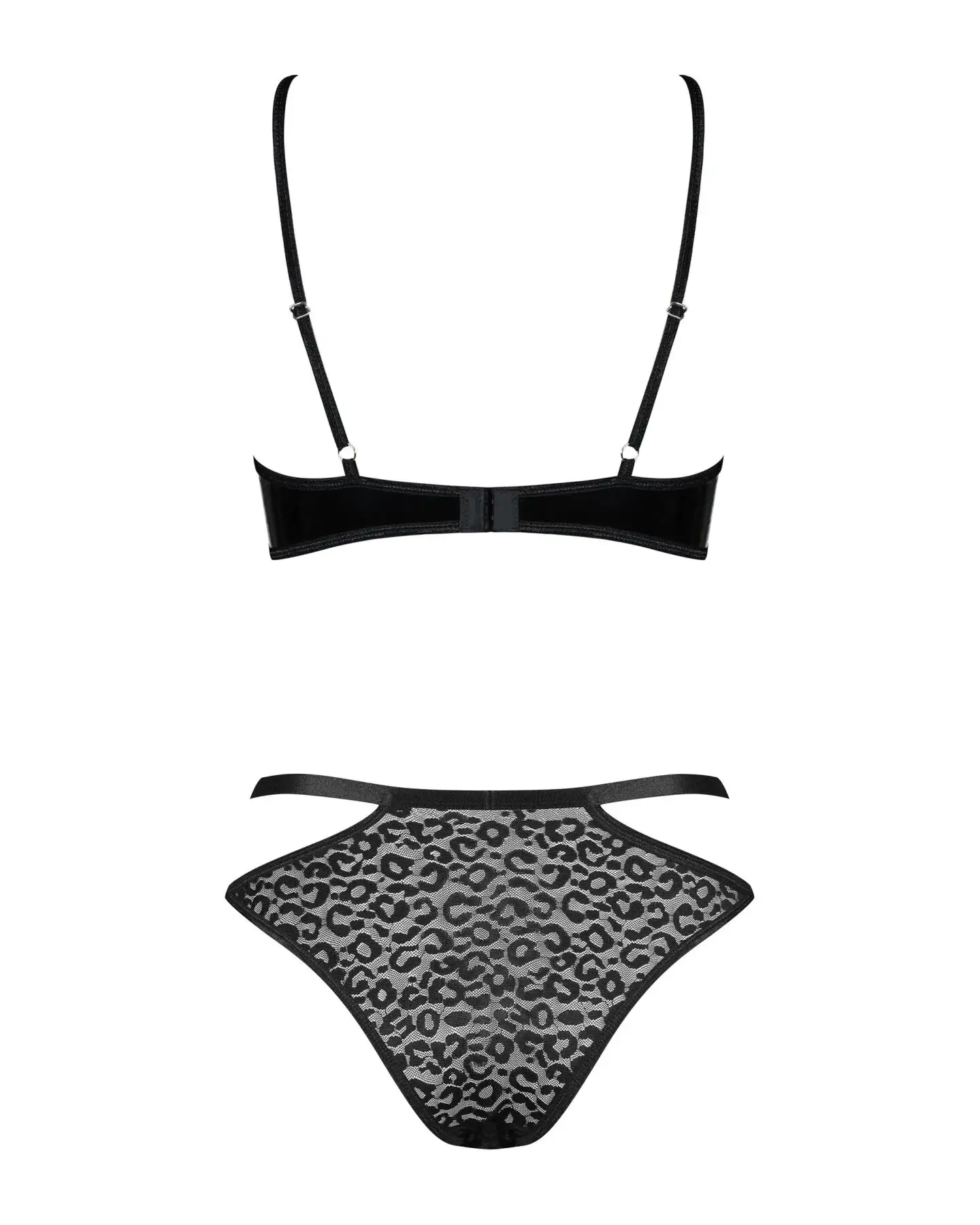 Эротический комплект под латекс со стрепами Obsessive Bagirela 2-pcs set S/M, черный, под леопард, б