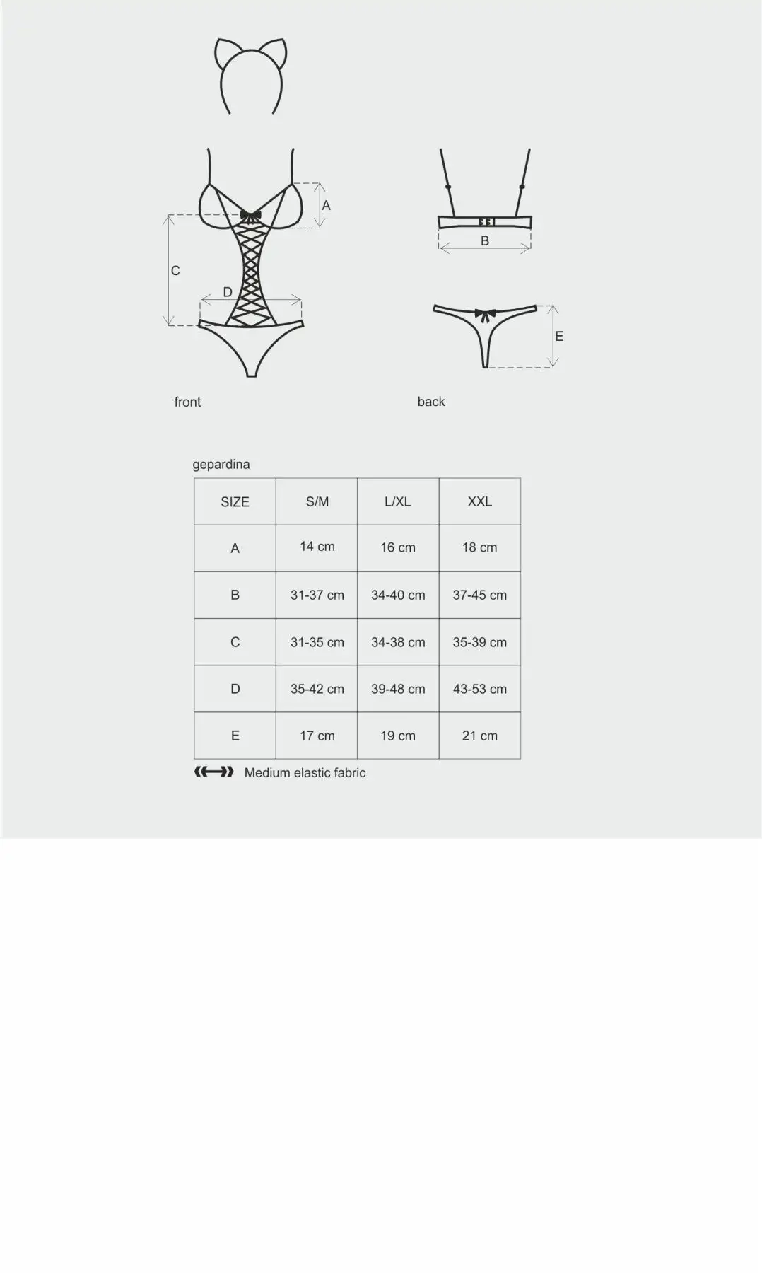 Этот костюм доступен в размерах L/XL, что делает его идеальным для женщин с пышными формами, которые хотят продемонстрировать свои достоинства. Если вы ищете что-то особенное для романтической ночи или хотите оживить свою личную жизнь чем-то новым и захватывающим, костюм Obsessive Gepardina из 3 предметов L/XL обязательно вам понравится.