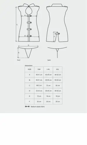 Этот костюм доступен в размерах L/XL, что делает его подходящим для большинства типов телосложения. Он разработан, чтобы облегать фигуру, не будучи слишком тугим или ограничительным.