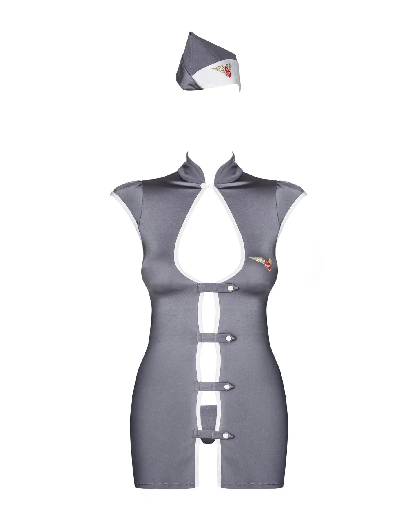 Фотографии Эротический костюм стюардессы Obsessive Stewardess 3 pcs costume grey L/XL, серый, платье, стринги