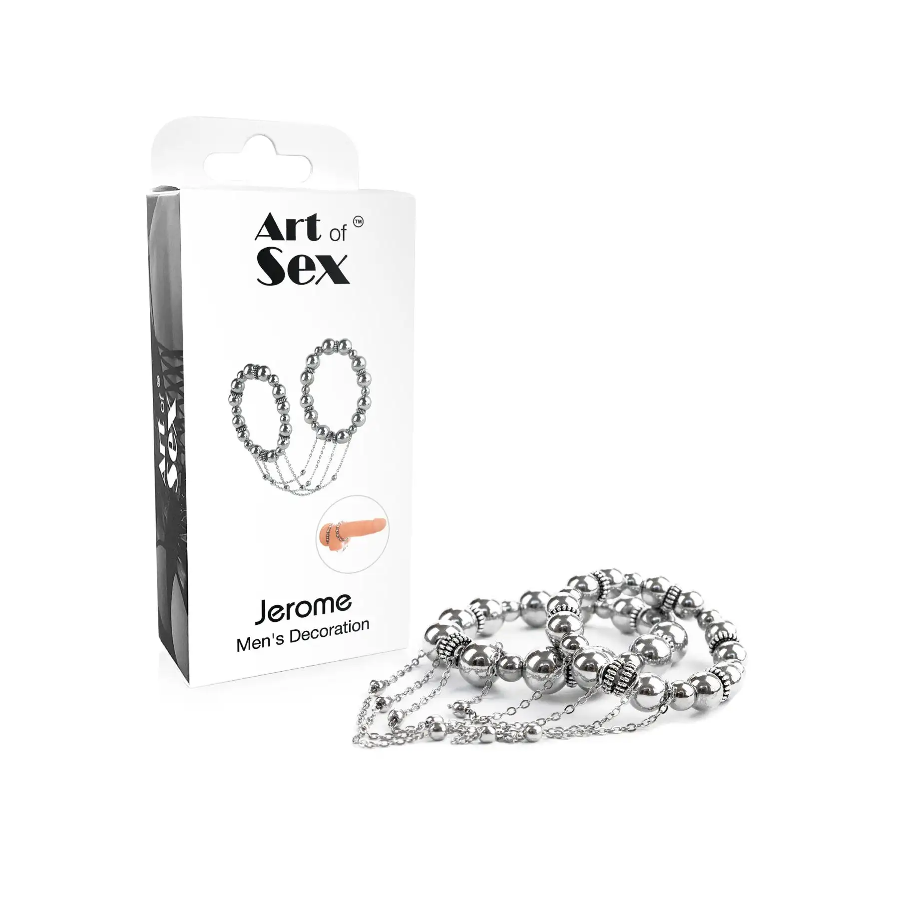 Искусство секса - Джером, потрясающий серебряный аксессуар для пениса и яичек, который поднимет ваши интимные переживания на новую высоту. Это сексуальное украшение призвано усилить ваше удовольствие и добавить нотку элегантности вашим приключениям в спальне.