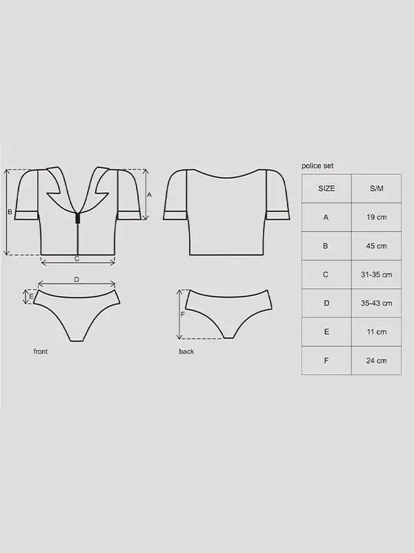 Набор Obsessive Police S/M выпускается в различных размерах, подходящих для любого типа телосложения. Будь вы миниатюрной или фигуристой, в этом костюме вы будете чувствовать себя уверенно и сексуально. За ним также легко ухаживать - просто постирайте его вручную в холодной воде и повесьте сушиться.
