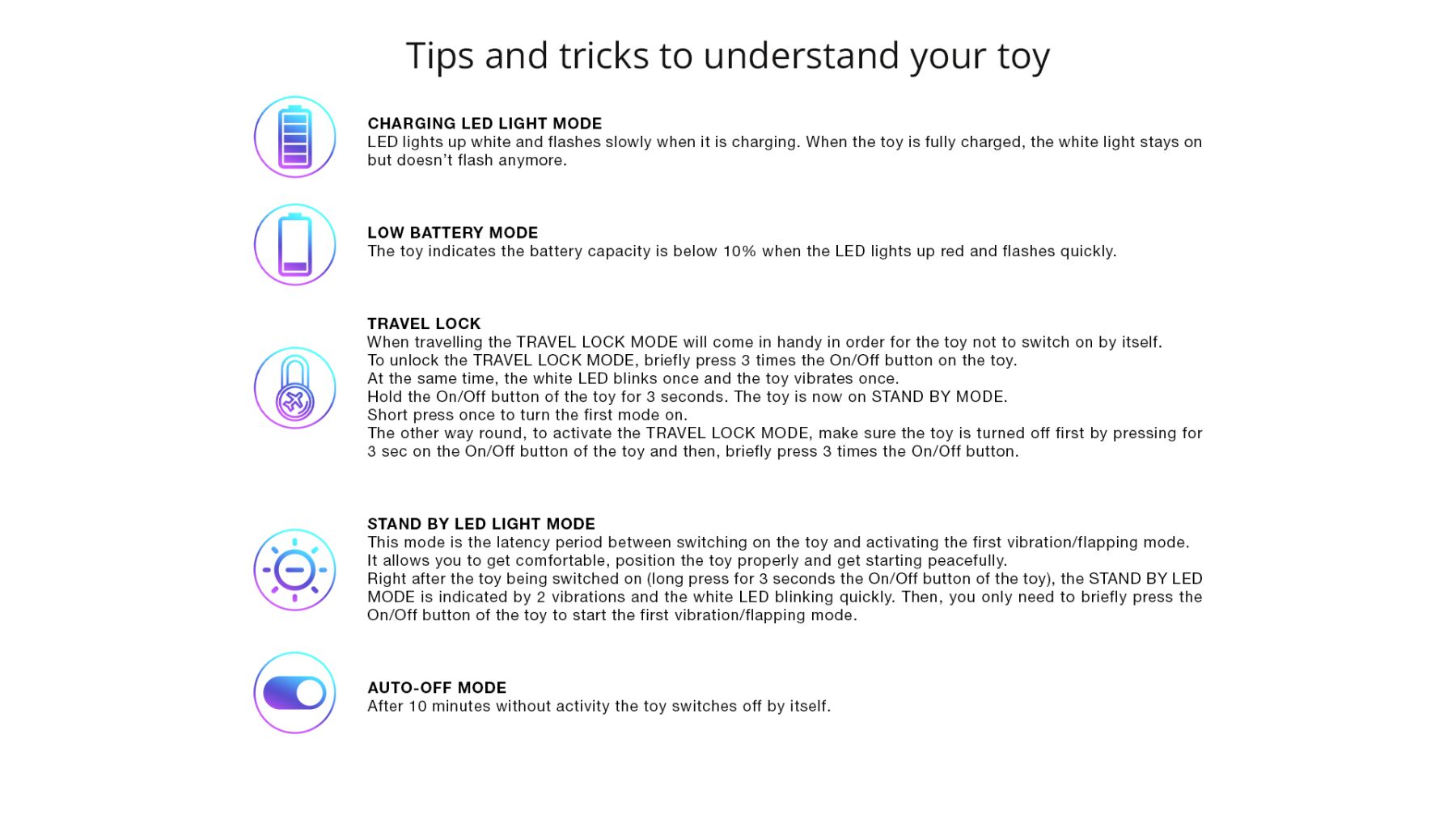 - Режимы работы: 5 различных режимов вакуумной стимуляции, чтобы каждая женщина могла найти идеальный для себя.