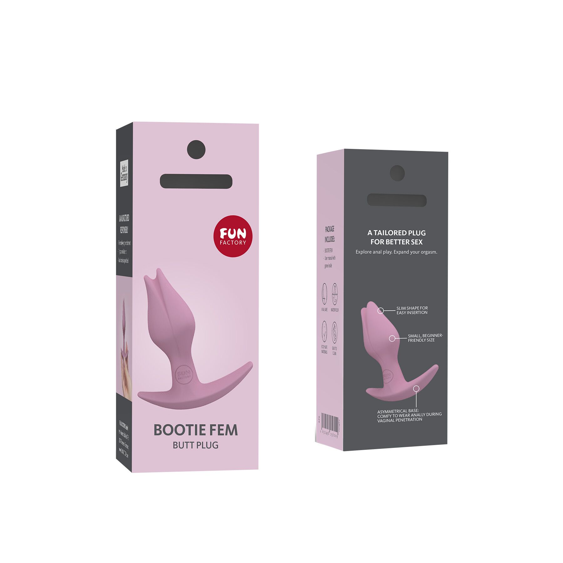 Удобство использования достигается благодаря узкому раздвоенному кончику, который облегчает введение. Асимметричный дугообразный ограничитель обеспечивает идеальную посадку, а его тонкая форма делает пробку практически незаметной, даже под облегающей одеждой. Это позволяет носить аксессуар долгое время, оставаясь уверенным и комфортным.