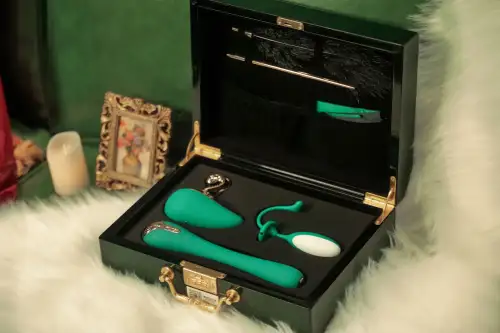Кейc Pandora Box выполнен из материала под полированное дерево с золотистой фурнитурой и оснащен надежным кодовым замком. Внутри — специальные отделения для каждой игрушки, крепления для аксессуаров и бархатные кармашки для зарядных кабелей и инструкции.