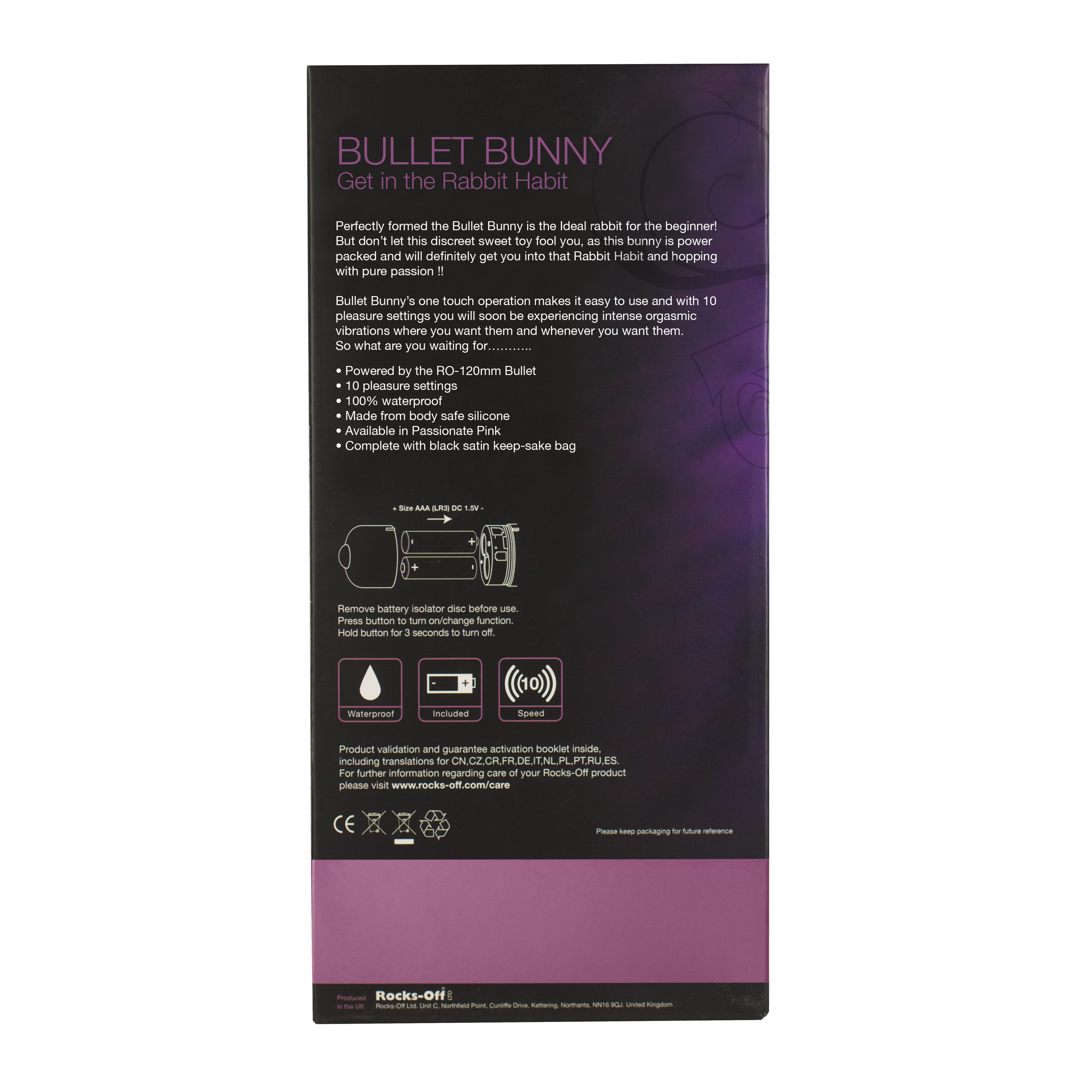 Имея размеры 165 мм x 75 мм x 33 мм, этот вибратор компактен и удобен в обращении. Вставляемая длина игрушки составляет 10 см, что делает ее идеальной как для начинающих, так и для опытных пользователей. Розовый вибратор Rocks Off Bullet-Bunny 10 может похвастаться множеством функций, которые позволяют вам настраивать его в соответствии с вашими предпочтениями.