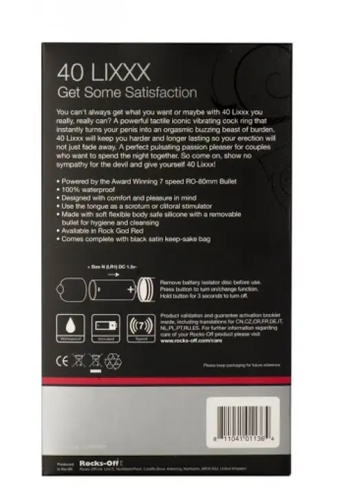Используете ли вы его в одиночку или с партнером, эрекционное кольцо Rocks Off 40 Lixxx Red обязательно поднимет ваш сексуальный опыт на новую высоту. Так зачем ждать? Добавьте эту захватывающую игрушку в свою коллекцию сегодня и начните исследовать все возможности!