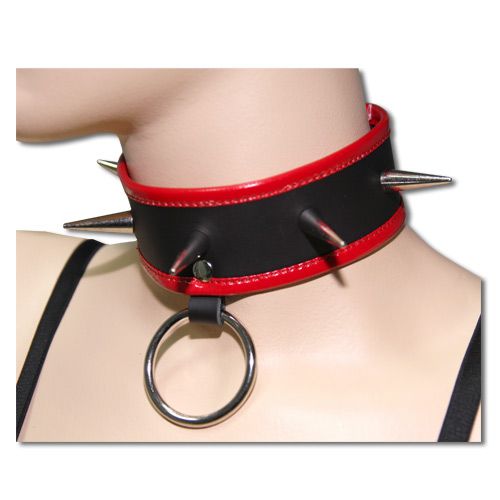 Строгий ошейник для создания БДСМ игр, отлично подойдет отьпытным парам любящим жесткие доминирующие сессии. Ошейник выполнен из кожи и украшен большими металлическими шипами. Впереди ошейник имеет большое кольцо к которому можно пристегнуть поводок.