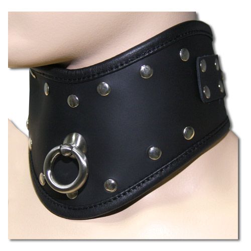 Ошейник предназначен для создания ролевых игр, в которых один партнер полностью подчиняется другому. Эта модель ошейника выполнена из кожы, мягкой и приятной на ошупь. Передняя часть ошейника имеет специальное кольцо к которому можно крепить поводок. Декорирован ошейник металлическими заклепками.