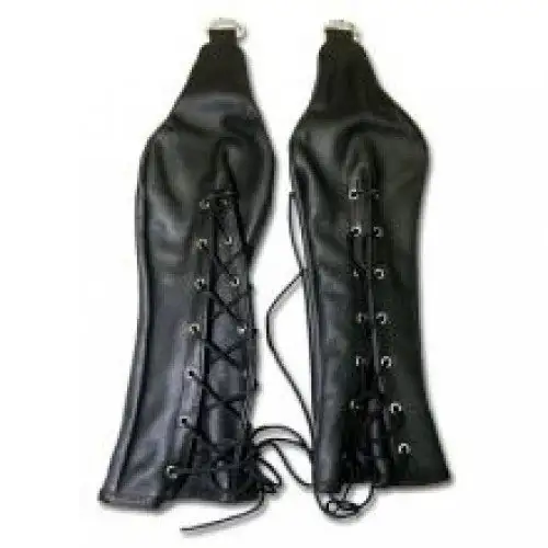 Бандаж для рук из искусственной кожи, предназначен для создания ролевых игр, во время которых, господин фиксирует руки раба. При помощи специальных металлических колец, руки фиксируются к специальной штанге.