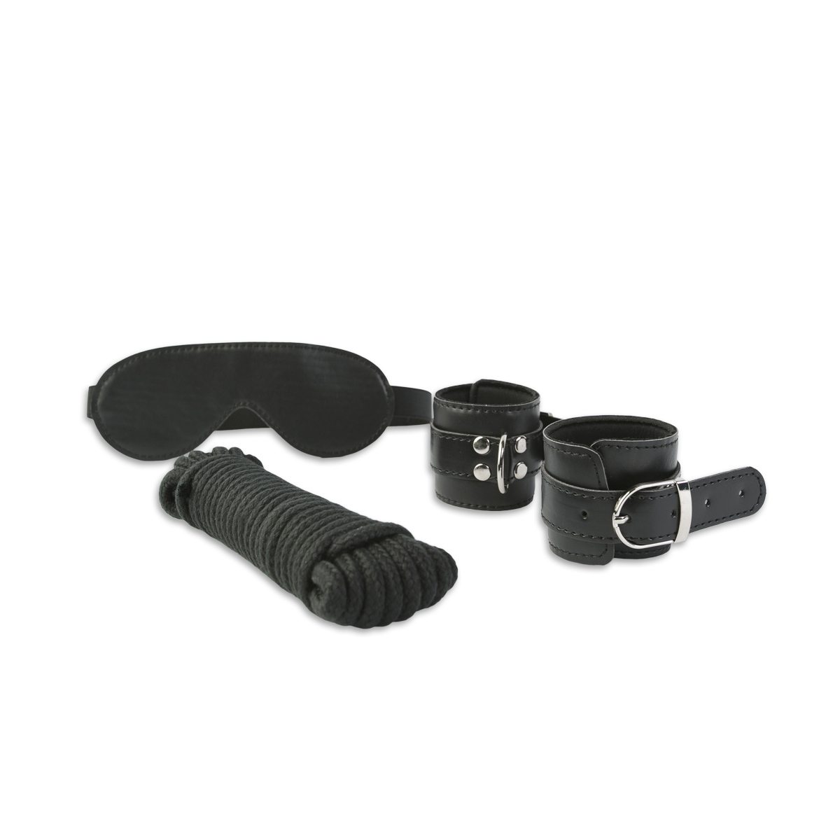 Набор для фиксации включает в себя все, что вам нужно, чтобы исследовать ваши самые сокровенные желания. В комплект входят манжеты для запястий, манжеты для лодыжек, ошейник и поводок — все это предназначено для того, чтобы удерживать вашего партнера на месте, пока вы предаетесь своим самым смелым фантазиям.