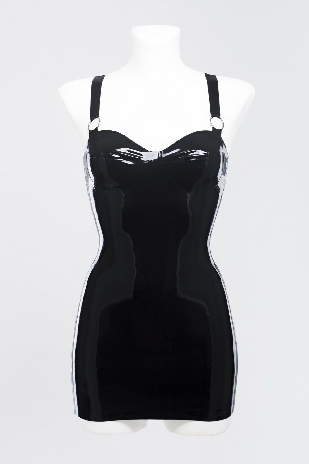 Красивое платье Latex Dress With Rings от украинского производителя Bright&Shiny имеет простой и невероятно сексуальный аксессуар. Бретели этого "мини-блэк-дресс" украшены металлическими кольцами и перекрещиваются на спине, что делает плечи более изящными. Плотно облегающая форма платья отлично подчеркивает соблазнительные женские формы. Глубокое декольте хорошо поддерживает грудь. Платье не имеет ни застежек, ни молний. Несмотря на это, наряд очень легко одевается за счет эластичности материала. Платье создано из качественного европейского латекса с минимумом швов. Дополните свой образ дерзкими туфлями на высоком каблуке, и ни один мужчина не сможет устоять перед вашим шармом.
