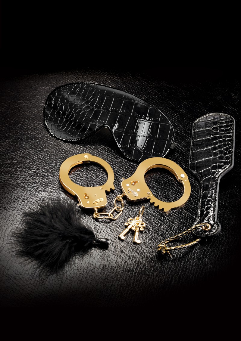 позолоченными наручниками с ключами;