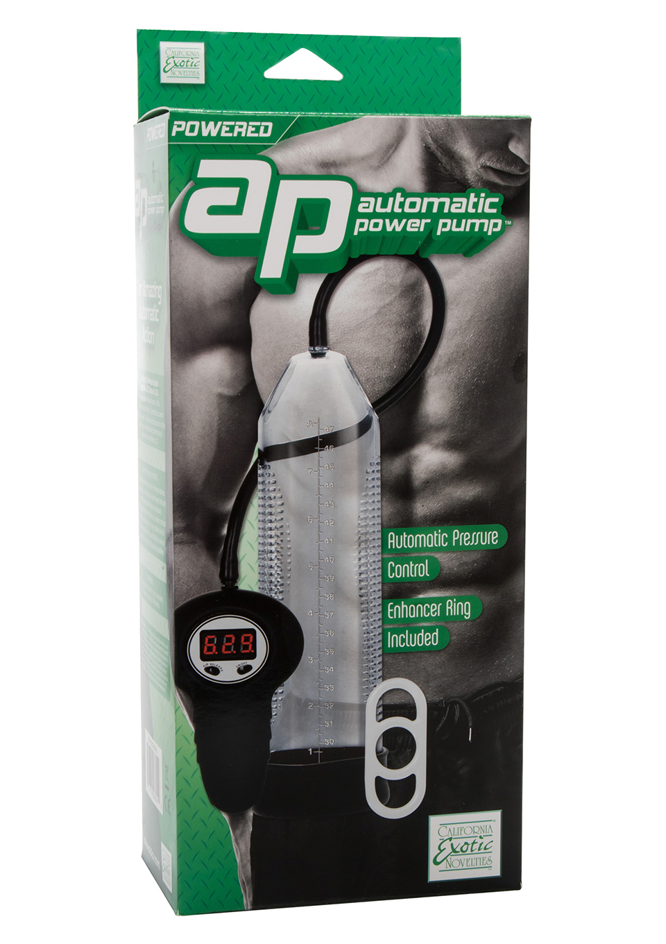 Автоматическая помпа для мгновенного увеличения члена. Имеет прозрачный цилиндр с размерной шкалой и ребристой внутренней поверхностью, дисплей для контроля уровня давления и кнопку для быстрого выпуска воздуха. Длина автоматической помпы - 25,5 см, диаметр - 6 см. Материал - силикон. Страна производитель - США.