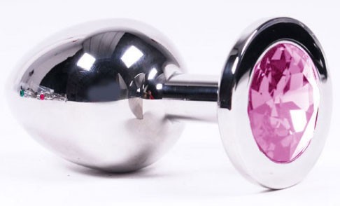 Металлическая анальная пробка с кристаллом под "SWAROVSKI". Изготовлена из гладкой, медицинской стали. Розовый кристалл. Бестселлер! Оптимальный размер. Длина - 9,5 см, диаметр - 4 см.