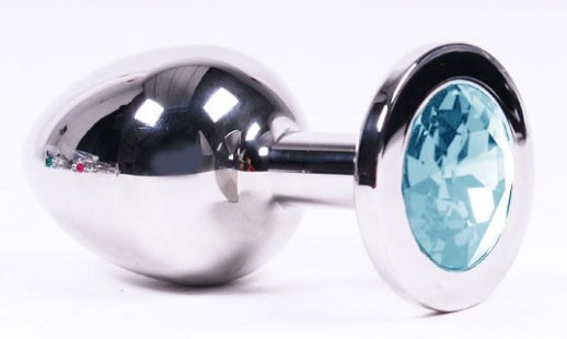 Металлическая анальная пробка с кристаллом под "SWAROVSKI". Изготовлена из гладкой, медицинской стали. Светлоголубой кристалл. Бестселлер! Оптимальный размер. Длина - 9,5 см, диаметр - 4 см.