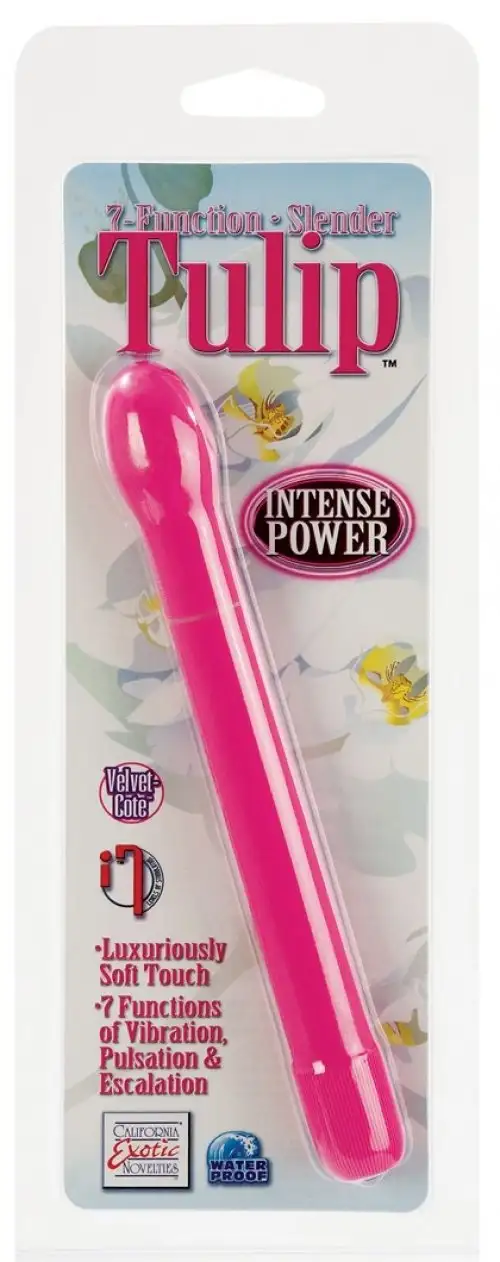 Пластиковый вибратор SLENDER TULIP PINK имеет 7 режимов вибрации. Водонепроницаемый. Общая длина - 19 см, рабочая длина - 15 см, диаметр - 2 см.