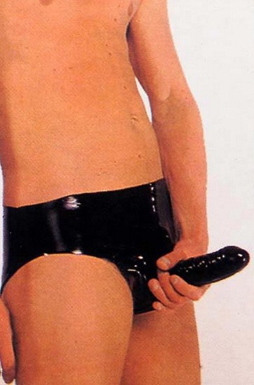 Трусы латексные со внутренним страпоном LATEX SHEATH PANTS BLACK SMALL. Длина - 16 см, диаметр - 3,5 см.