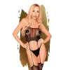 • в комплект входят такие элементы: стринги, манжеты, фартук, подвязочка;