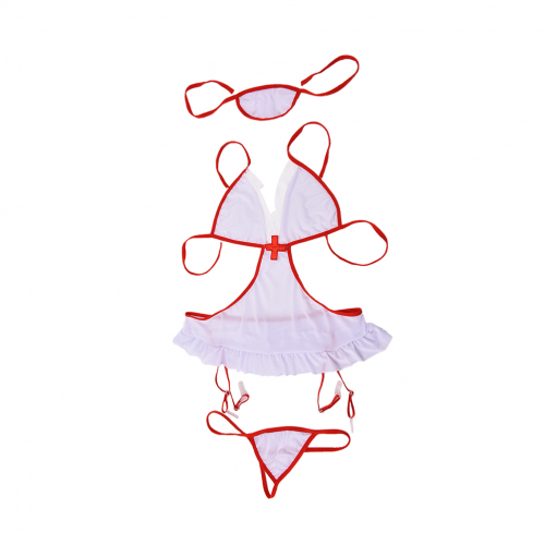 Эротический костюм состоит из короткого сексапильного платья, очаровательного чепчика и красивых трусиков. Лиф украшен изображением красного креста. Эффектная модель обладает такими преимуществами, как: