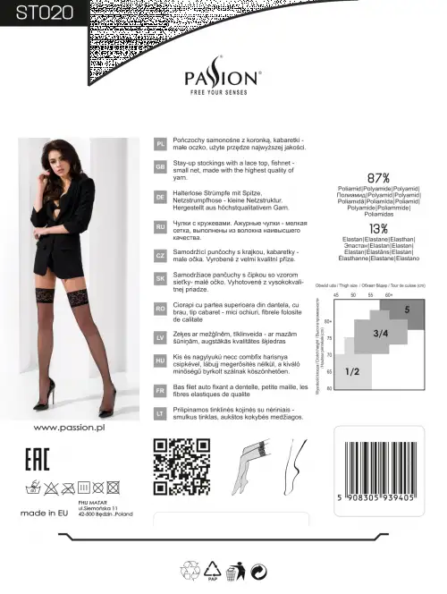 Всегда оставаться элегантной, изящной, сексуальной и привлекательной помогут чулки ST020 5 - XXL nero – Passion от европейского бренда. Они станут главной изюминкой вашего образа и сделают самым желанным секс-объектом для любимого мужчины. Чулки в мелкую черную сетку плотно облегают ножки, подчеркивая их красоту и стройность. Широкая резинка вверху оснащена двумя строчками силикона, которые гарантируют надежную фиксацию на бедре. А значит, чулки не сползают и не причиняют дискомфорт. Также вы можете не пользоваться поясом, так как в нем нет необходимости. Но для эротического стриптиза или жаркого свидания без него и шикарного белья не обойтись.