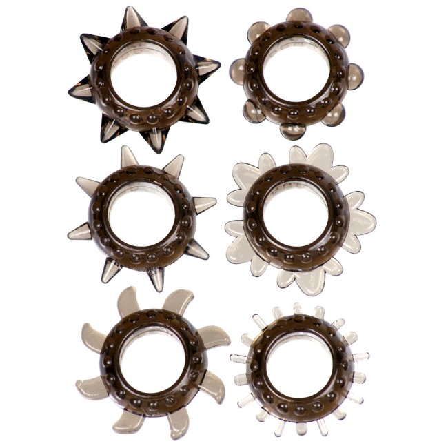 Linx Tickler Set Textured Ring Smoke — набор из шести текстурированных колец, которые поднимут ваше удовольствие на новый уровень. Этот набор изготовлен из материала TPE и имеет пять разных размеров для самых разных ощущений. Самое маленькое кольцо имеет внутренний диаметр 5,25 см, а длина самого большого — 4 см.