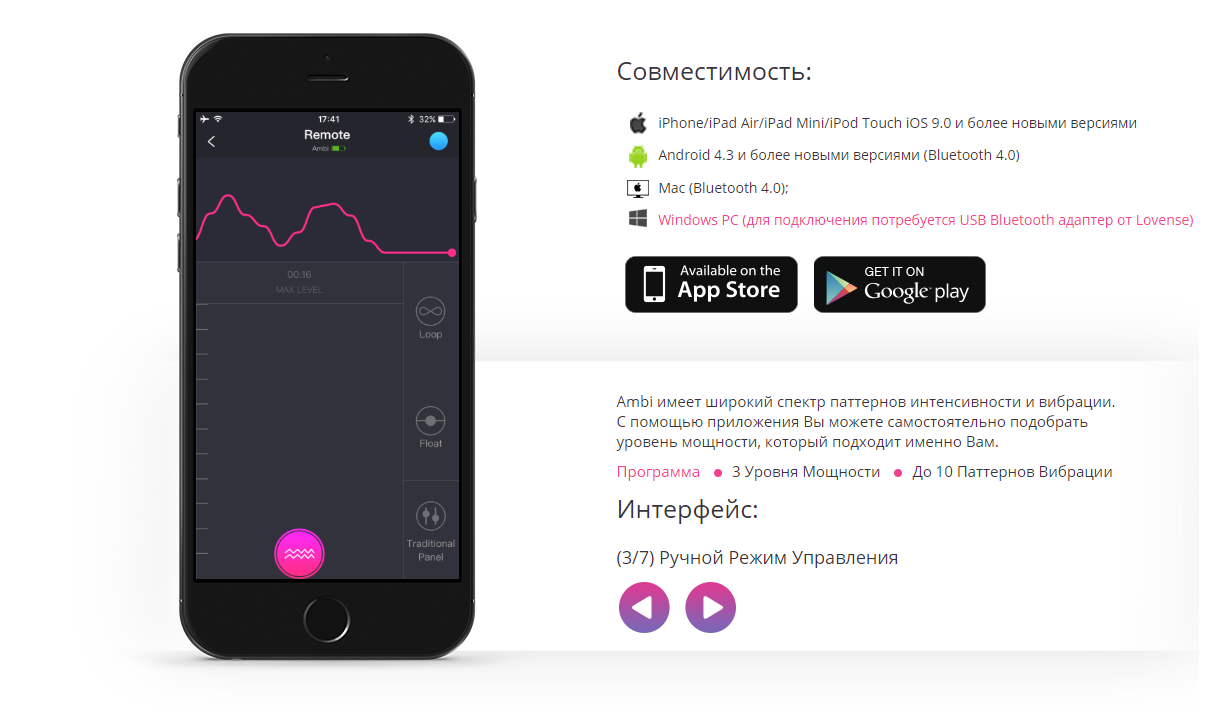 Так как вибратор Lovense – Ambi является технологической новинкой, основные его достоинства связаны с этой сферой: