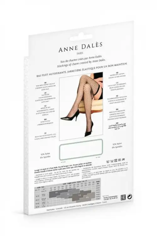 Чулки Anne Dales STELLA T3 Black с крупной сеткой придают женщине невероятной сексуальности, чувственности и неповторимости. Подобный аксессуар просто обязан быть в гардеробе каждой девушки, предпочитающей одеваться в стильную и брендовую одежду. Чулочки можно использовать не только для ролевых игр, но также и для повседневного ношения под юбку, платье, костюм и т.д. Эластичная резинка плотно обхватывает бедро, не давая интим-продукту соскальзывать, собираться в складки, как бы быстро вы не двигались. Отсутствие на носке и пятке уплотнений позволяет носить чулки с открытой обувью.