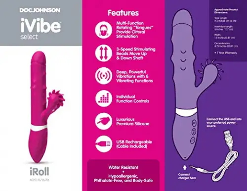 Получите новый опыт и необычные сексуальные ощущения с помощью iVibe™ Select – iRoll вибромассажера 24,13х3,8 см, который дополнительно оснащен клиторальным, вращающимся язычком отростком. Эти крутящиеся лепестки создают иллюзию полноценной оральной близости. Вы будете в неописуемом восторге от чувственного наслаждения. Выступающие на стволе шарики во время работы перемещаются вверх и вниз, стимулируя каждый миллиметр влагалища. Вся конструкция девайса специально разработана для того, чтобы доставить женщине максимальное удовольствие.