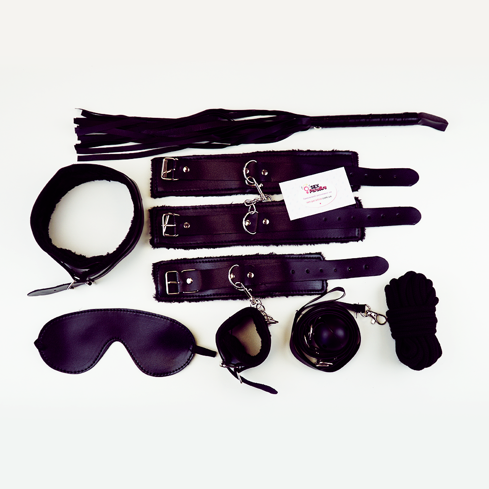 Парам, которые длительное время живут вместе, со временем сложно удивлять друг друга. Но если вы готовы экспериментировать и наслаждаться необычным сексом с партнером, рекомендуем попробовать что-то новенькое и заказать бондажный набор для садо-мазо и БДСМ практик. Покупая комплект, вы получаете: маску для сна, поножи, ошейник, плетку, поводок и специальную веревку для бондажа.