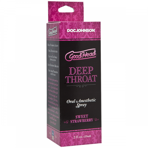 Doc Johnson GoodHead Deep Throat Spray Sweet Strawberry — революционный спрей, разработанный для того, чтобы сделать глубокий оральный секс проще и приятнее. Этот флакон спрея объемом 59 мл содержит натуральные ингредиенты, которые помогают уменьшить рвотный рефлекс и придают сладкий клубничный вкус для еще большего удовольствия. Уникальная смесь ингредиентов помогает расслабить мышцы горла, позволяя вашему партнеру погрузиться глубже, чем когда-либо прежде. С этим спреем вы можете наслаждаться более длительными сеансами, не чувствуя дискомфорта и рвотных позывов.
