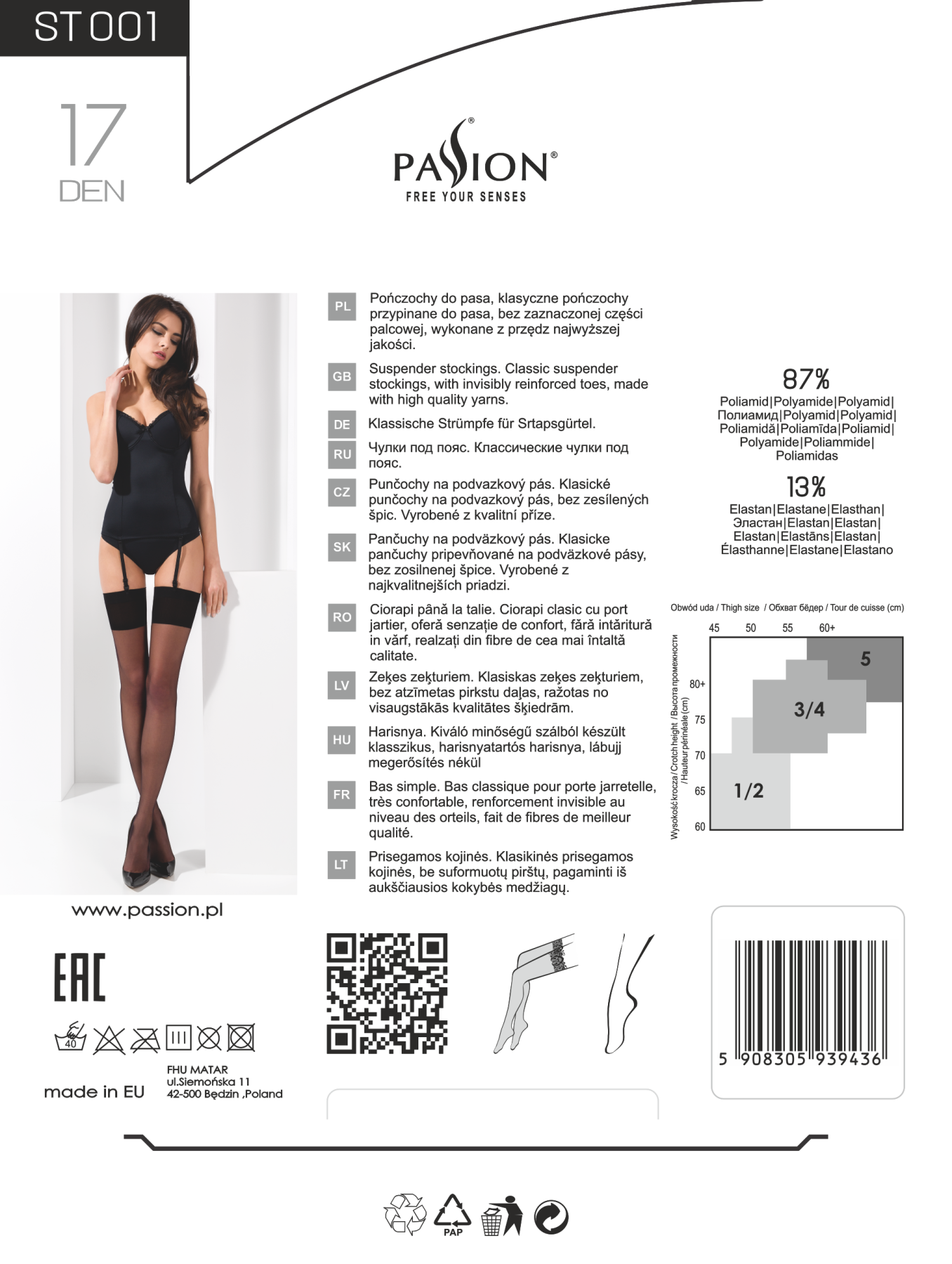 Чулки ST001 5 nero - Passion предназначены для ношения с любой одеждой, будь то платье или джинсы и топ. Их также можно сочетать с одним из наших комплектов сексуального нижнего белья для особенного вечера. Благодаря классическому дизайну эти чулки никогда не выйдут из моды, поэтому вы можете носить их раз за разом, не беспокоясь о том, что они будут старомодными или немодными.