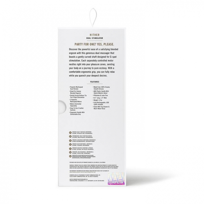 Вибратор Cosmopolitan Hither Rabbit — идеальный компаньон для интимных моментов. Этот вибратор создан, чтобы доставить вам максимальное удовольствие и удовлетворение. Он оснащен мощным двигателем, обеспечивающим интенсивные вибрации, а также двумя гибкими ушками, которые можно использовать для стимуляции клитора и других чувствительных областей. Эргономичный дизайн обеспечивает удобный захват и легкую маневренность, а водонепроницаемая конструкция делает его безопасным для использования в душе или ванне. С 20 скоростями и 8 режимами вибрации вы можете настроить свой опыт, чтобы найти правильный уровень стимуляции для вас. Вибратор Cosmopolitan Hither Rabbit обязательно станет неотъемлемой частью игр в вашей спальне!