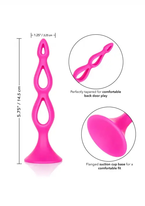 CalExotic Booty Call Silicone Triple Probe - тройная полая анальная пробка, 10,25х3,25 см, розовый