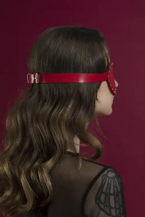 Для того чтобы половой акт всегда приносил лишь удовольствие, необходимо вносить определенные новшества. Один из лучших вариантов - маска на глаза с заклепками Feral Feelings - Blindfold Mask, из натуральной кожи красного цвета.