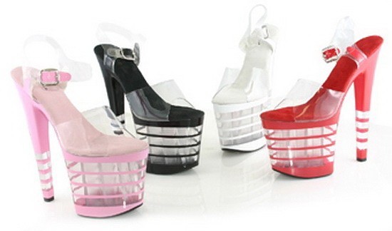 Женские туфли на прозрачной платформе белого цвета. Высота каблука 20 см, высота платформы - 10 см.