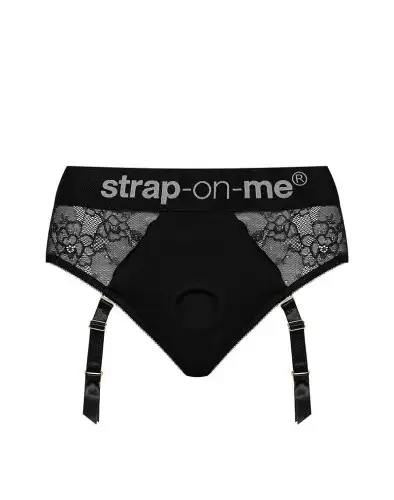 Кружевные трусы для страпона с подвязками для чулок Strap-On-Me DIVA HARNESS - M